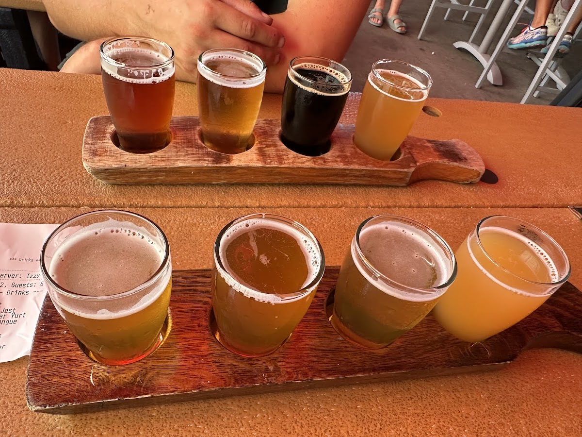We had great service and the food was delicious! We got the Hot Pretzels and the house mustard was perfect. If you can't have dairy, I recommend it. We also got the Rocket Man pizza, which we have had before, and it does not disappoint. My husband got a flight of IPAs (Whiled Away, Nightswimmer, Cool Cat, and the Sunrunnr) and a glass of the Rainmaker. The Whiled Away was his favorite, but he enjoyed them all.